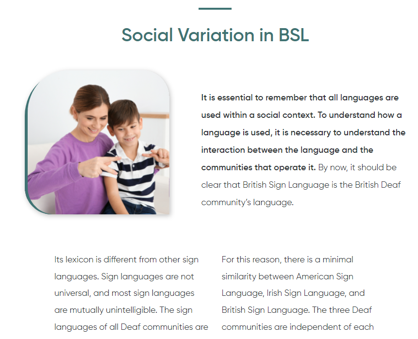 This online extensive Deaf Awareness is broken down into bite-sized modules so that you can learn at your own pace and in your own time. Furthermore, our experts are only an email or phone call away from answering any of your Deaf Awareness related questions.