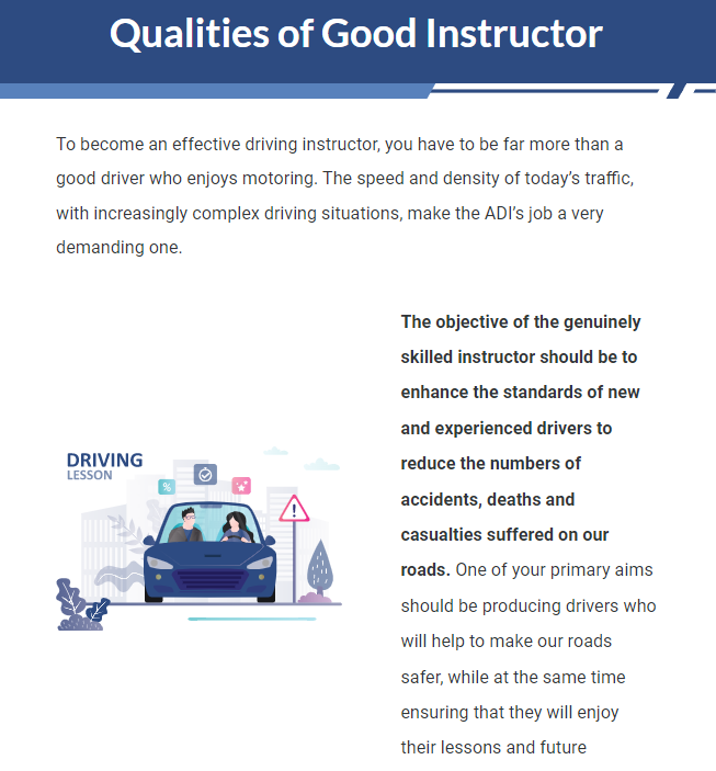 This online extensive Driving Instructor is broken down into bite-sized modules so that you can learn at your own pace and in your own time. Furthermore, our experts are only an email or phone call away from answering any of your Driving Instructor related questions.