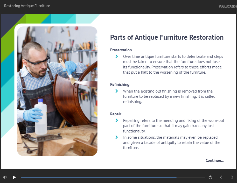 Enrolling in our Furniture Restorationcourse does not require any prior knowledge or experience. All that is required is an internet-connected gadget and a passion to learn.