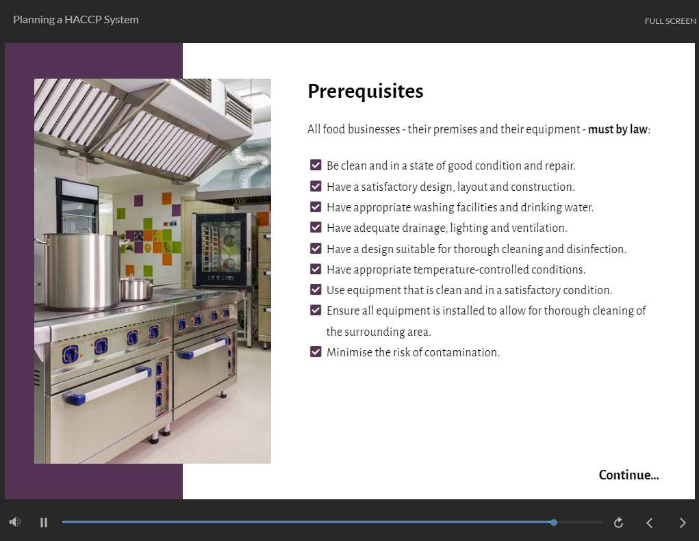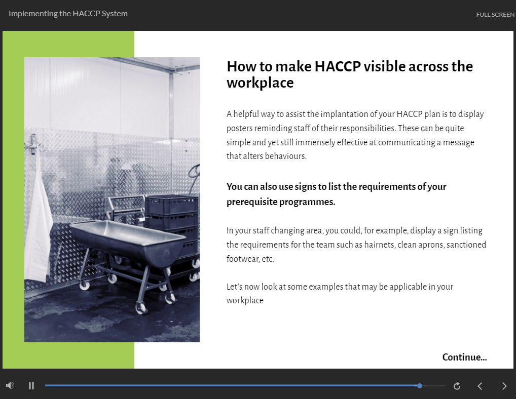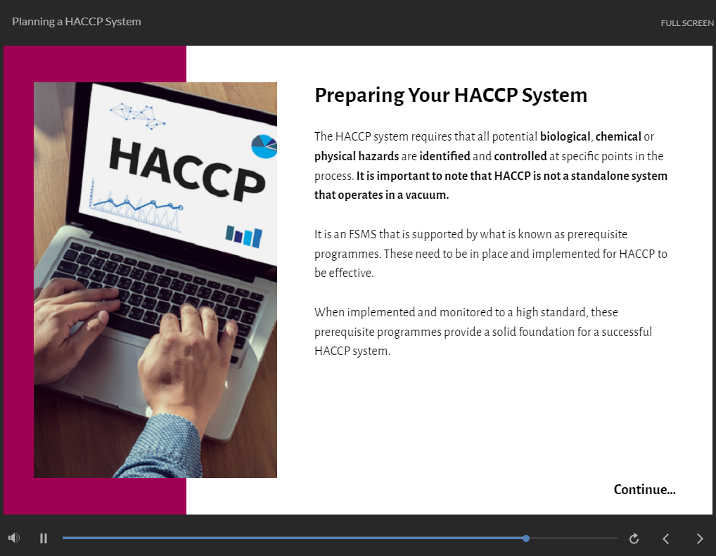 This online extensive HACCP Training is broken down into bite-sized modules so that you can learn at your own pace and in your own time. Furthermore, our experts are only an email or phone call away from answering any of your HACCP Training related questions.