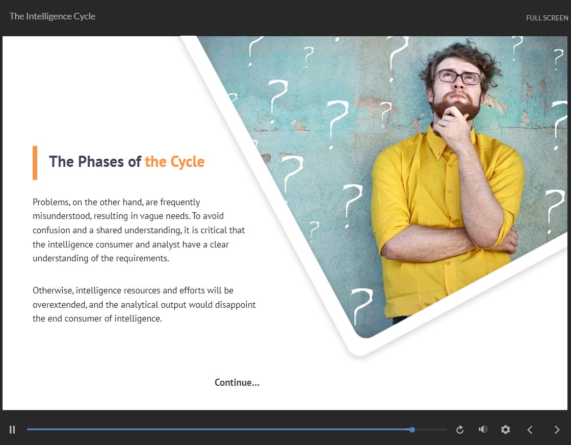 This online extensive Intelligence Analyst Certification Course is broken down into bite-sized modules so that you can learn at your own pace and in your own time. Furthermore, our experts are only an email or phone call away from answering any of your Intelligence Analyst Certification Course related questions.