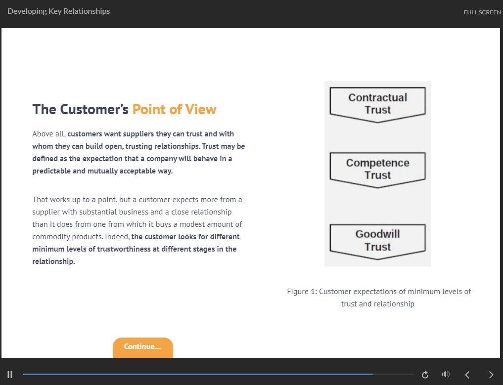 Developing strong relationships is at the heart of Key Account Management. This course will guide you through the importance of record keeping and how to manage internal aspects effectively. Finally, you will master the art of crafting a compelling value proposition that resonates with your key accounts.