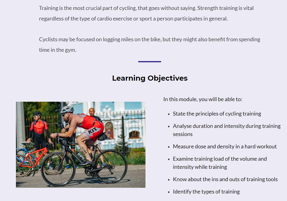 Enrolling in our Performance Cycling course does not require any prior knowledge or experience. All that is required is an internet-connected gadget and a passion to learn.