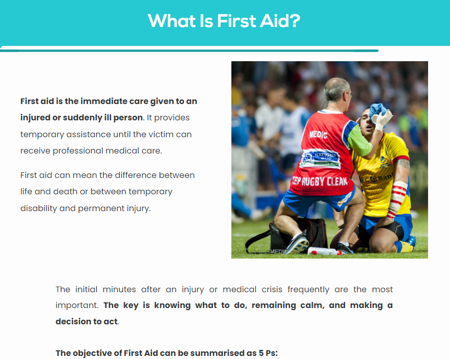 This online extensive Rugby First Aid is broken down into bite-sized modules so that you can learn at your own pace and in your own time. Furthermore, our experts are only an email or phone call away from answering any of your Rugby First Aid related questions.